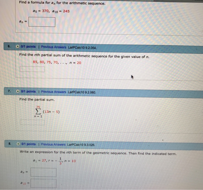 Read the book Dr. So partial sum is going to be 10 over to the end was 10 so 10 over to a one is 05 plus a 10 77. S n n 2 a 1 a n textcolor c34632 S_nfrac n 2 a_1a_n S n 2 n a 1 a n The partial sum for the first 100 terms of an arithmetic sequence is.