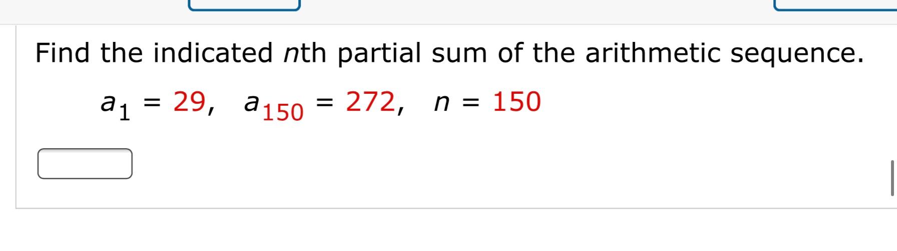 A1 100 a25 220 n 25. Where a1 is the first term and d is the common difference. The sum of the first n terms the nth partial sum of an arithmetic sequence.