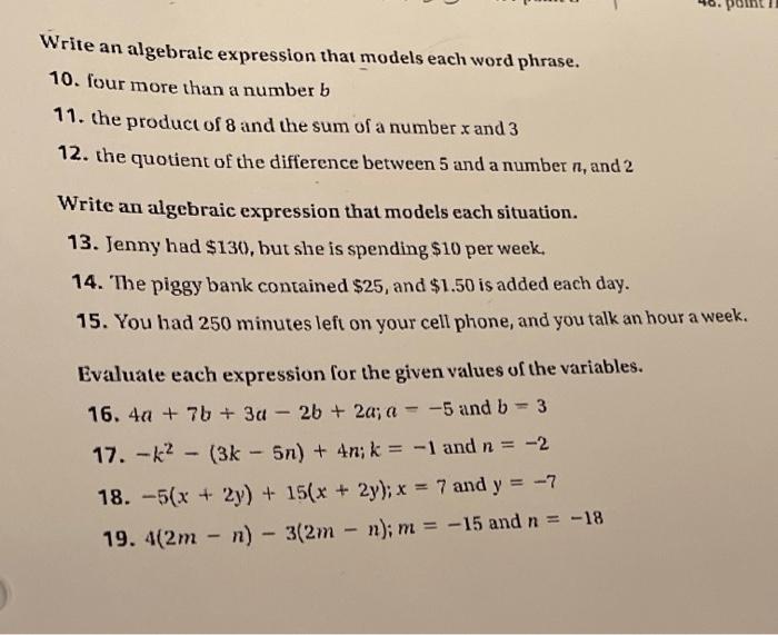 Solved Write An Algebraic Expression That Models Each Word Chegg Com